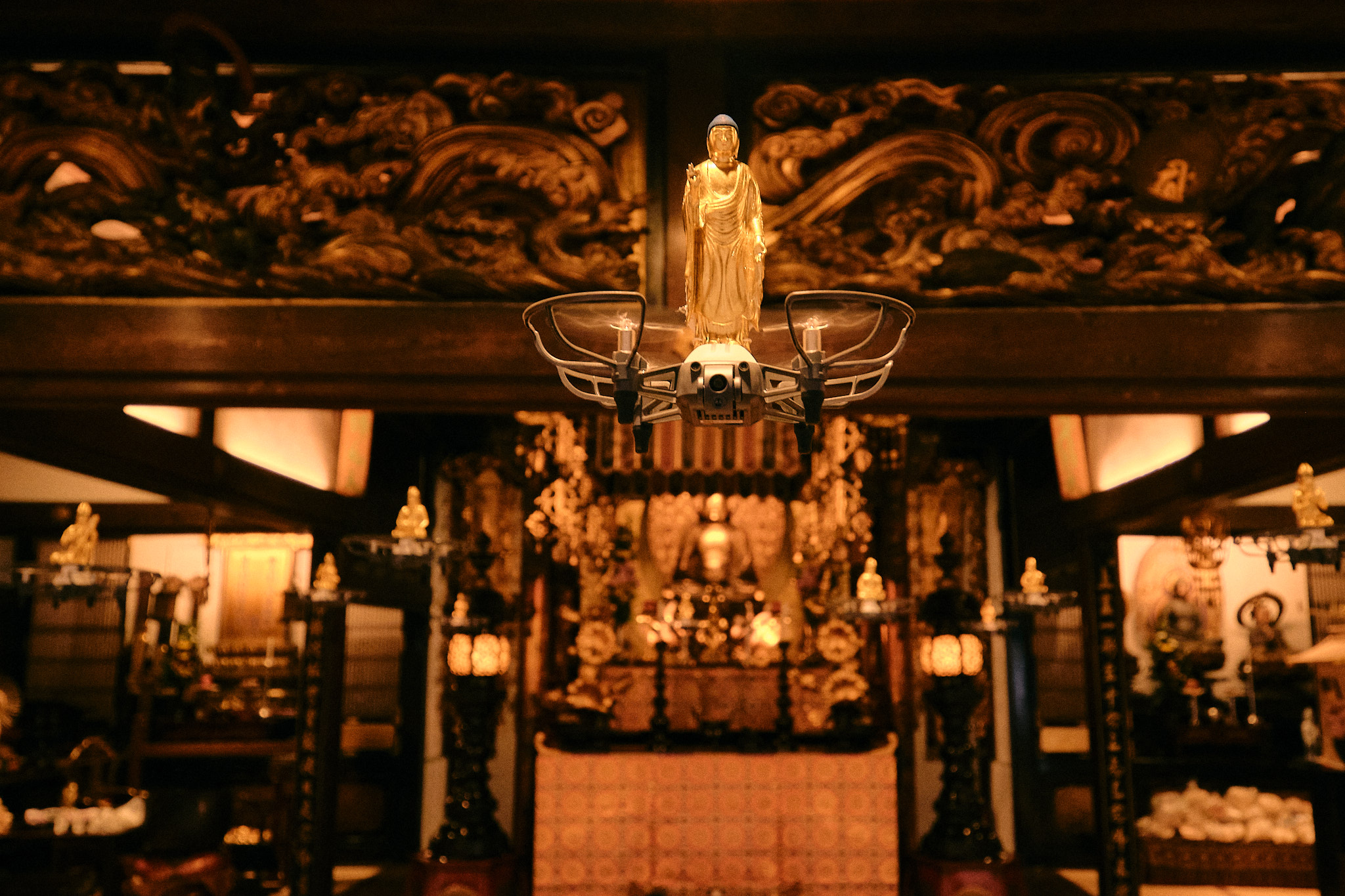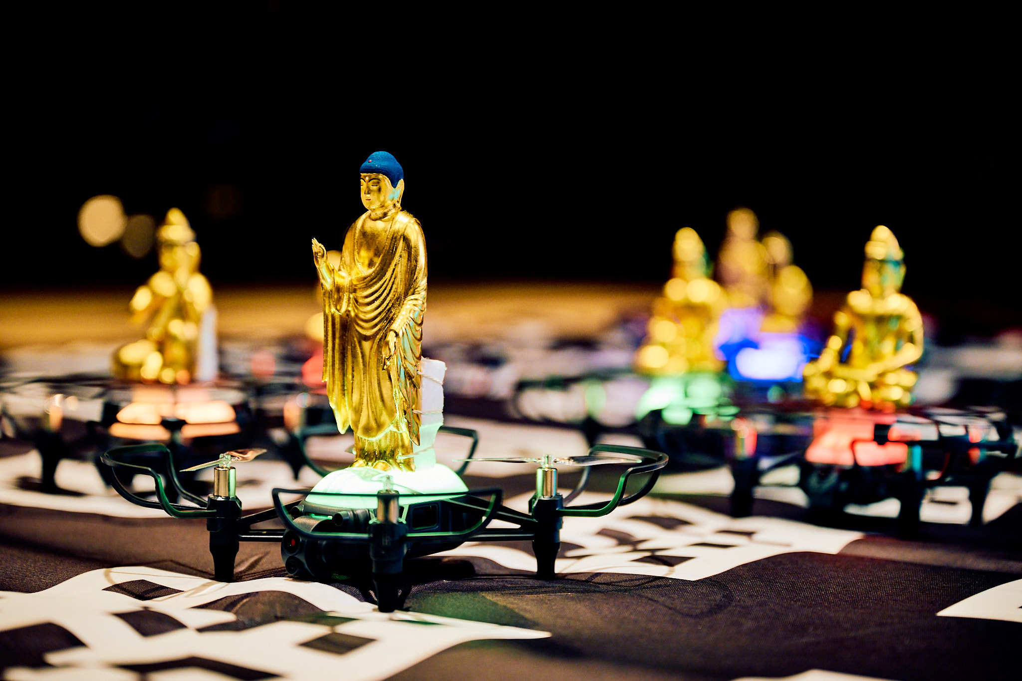 本セッションでは、7年にわたって開発を続けてきた三浦と、ドローン仏の舞う斬新な法要をつとめてきた浄土宗龍岸寺住職の池口龍法が、ドローン仏のすべてを語り尽くす。そして、木魚の音と念仏の声が厳かに響くなか、ドローン仏8尊が宙を舞う。史上初めてドローン仏が東京に来迎。この仏縁にぜひお出会いください!