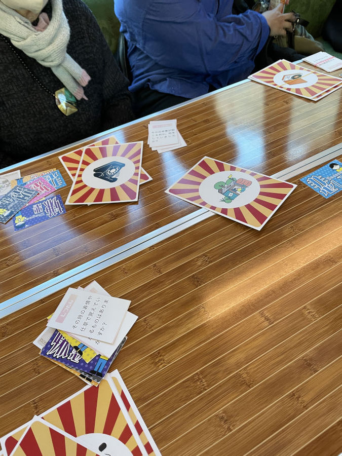 「ショウワニア」は、昭和にまつわるアイテムやエピソードをテーマにしたカードゲームです。参加者は、カードに描かれたアイテムや出来事について語り合い、記憶や思い出を共有しながら進めていきます。ゲーム内では、参加者の懐かしい思い出を楽しむことができ、世代を超えた交流を促進します。”