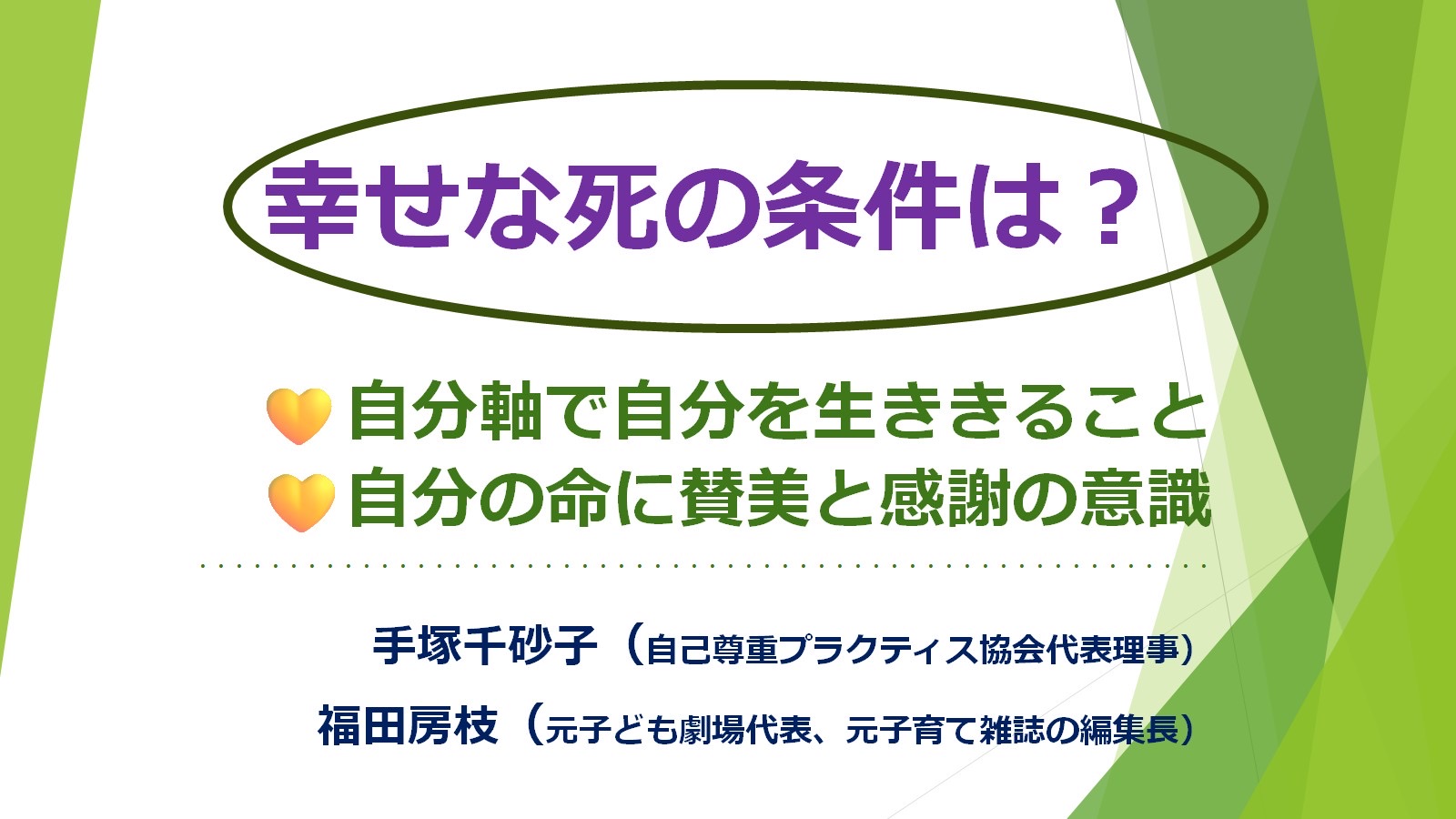 「幸せな死」を迎えるためには「幸せな自分を生きる」ことです。