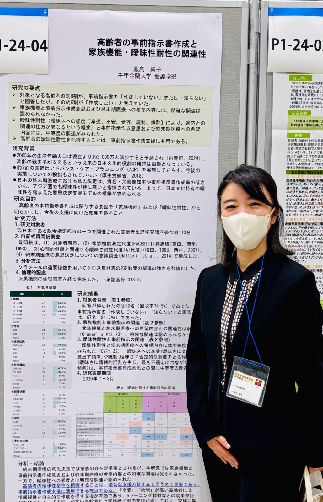 新人看護師として多くの末期がんの患者と出会い、日本での一般病院における緩和ケア導入の必要性を痛感する。当時は日本で緩和ケアについて学ぶチャンスが限られていたため、オーストラリアおよびアメリカにて緩和ケア看護を学ぶ。高齢者が考える「よい死」とは何か?が約20年にわたる研究テーマである。よく死ぬことは次世代への生きる力となる。
